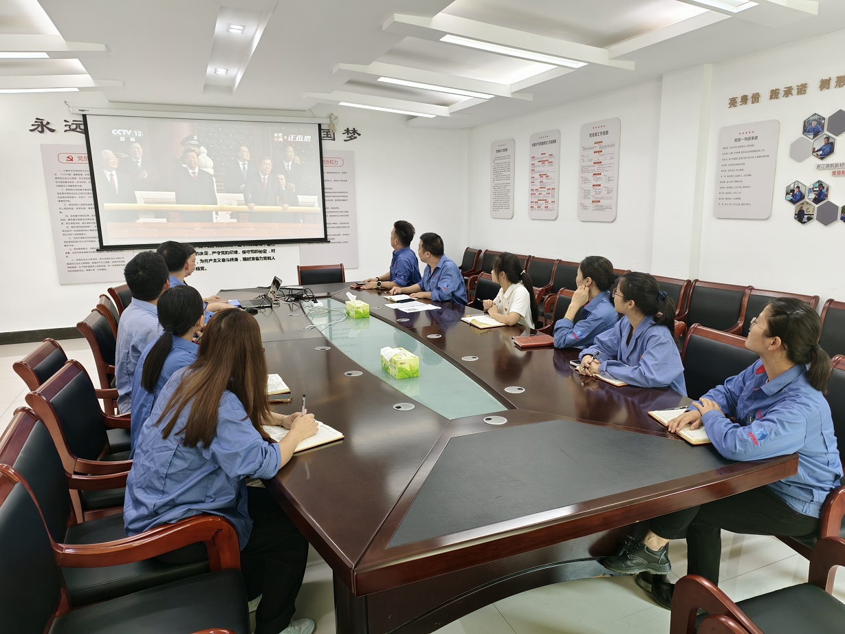 觀看閱兵過程中,員工們?nèi)褙炞ⅲ餐仡櫮嵌畏榛饸q月,緬懷革命先烈,感受強(qiáng)國強(qiáng)軍的新時(shí)代脈動,看到受閱官兵威武雄壯的英姿和各類新型武器裝備,大家的民族自豪感油然而生,為祖國今日之強(qiáng)大倍感驕傲。